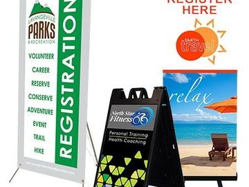 A category all their own. Event banners and displays are a lightweight solution for events ranging from job fairs, to special outdoor events, to massive sprawling tradeshows. Choose a colorful high-contrast design that’s reusable and makes a great impression at any event or if you take your business on the road.